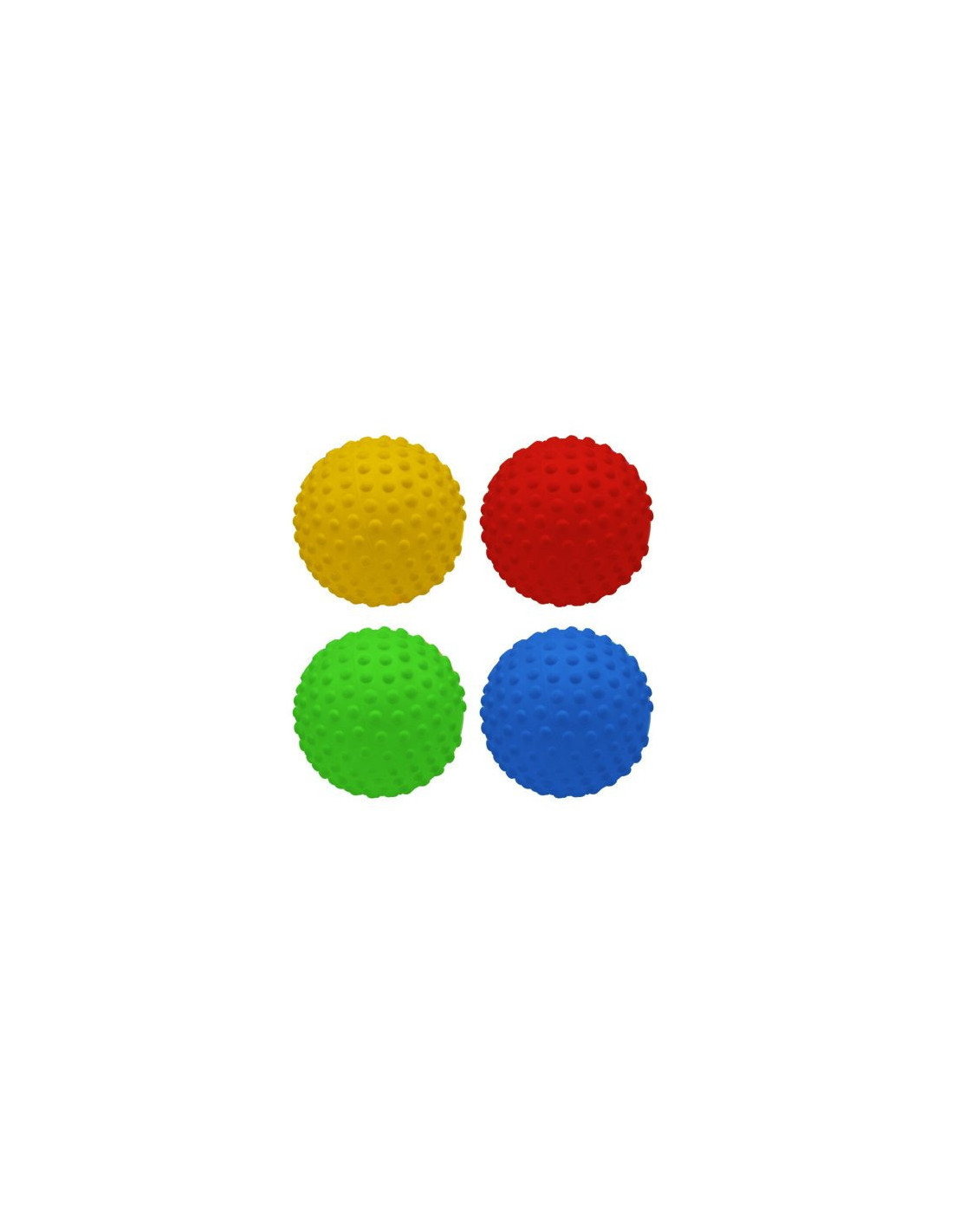 Le lot de 4 balles sensorielles 10 cm est composé de balles tactiles en PVC dotées de picots pour une prise en main facile et sécurisante. Légères et résistantes, elles sont idéales pour l’EPS, la motricité et les activités sensorielles.