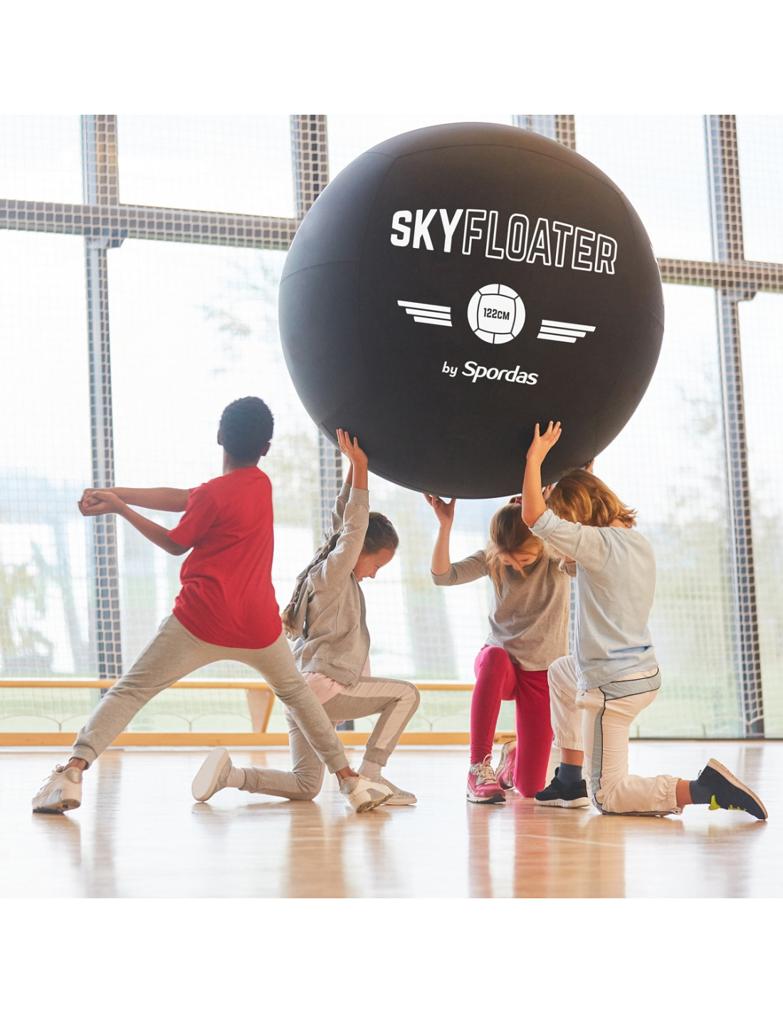 Développé pour la pratique du sport collectif Kin-Ball®, le ballon Skyfloater peut également être utilisé pour de nombreux jeux de coopération. Son diamètre de 122 cm encourage la participation de tous les joueurs et renforce la dynamique collective.