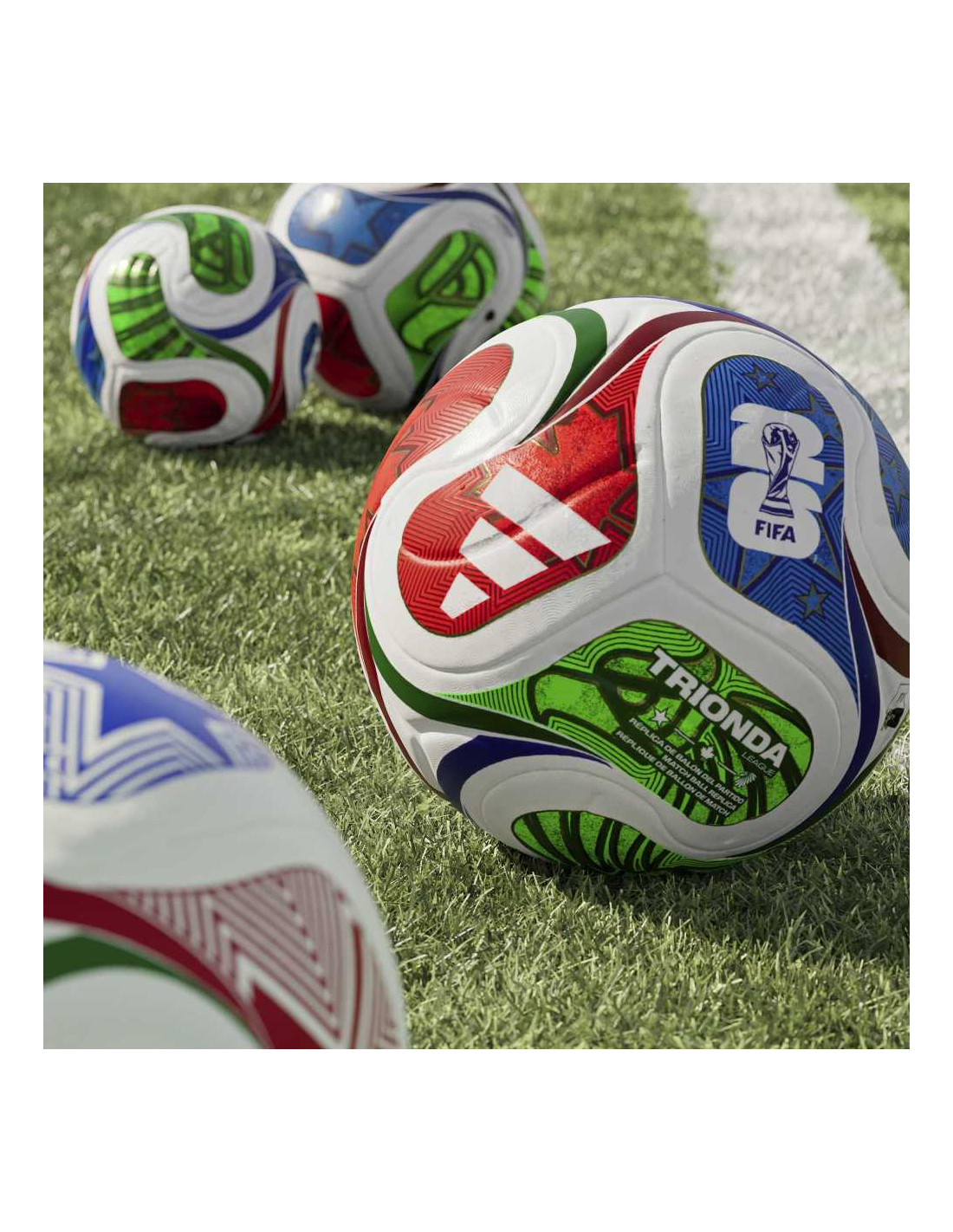 Les motifs colorés du Trionda League célèbrent l’union sportive des États-Unis, du Canada et du Mexique, les trois pays hôtes de la Coupe du Monde 2026. Ces graphismes dynamiques rappellent ceux du ballon officiel, offrant une identité visuelle forte sur tous les terrains.