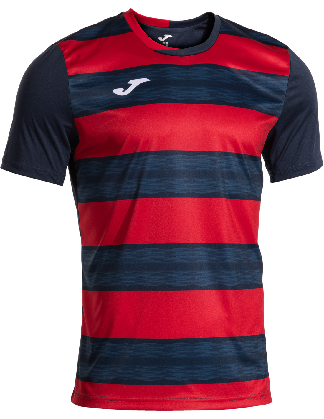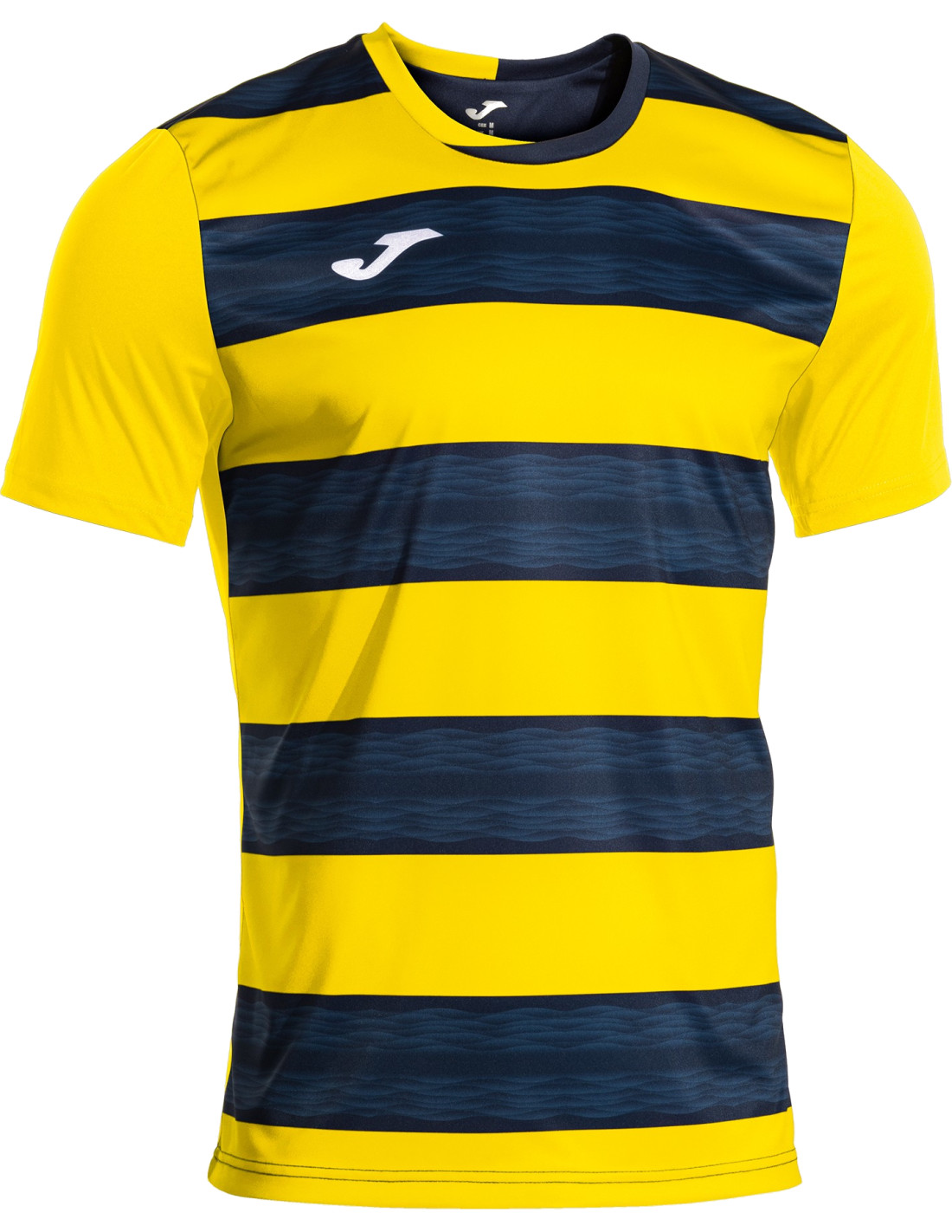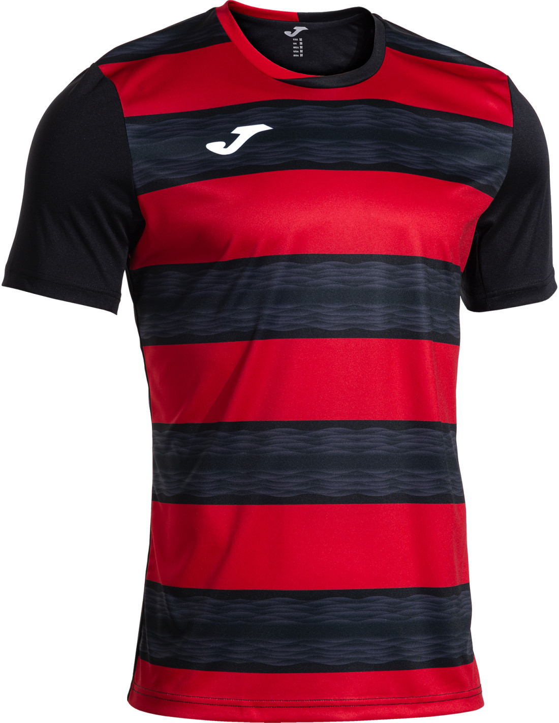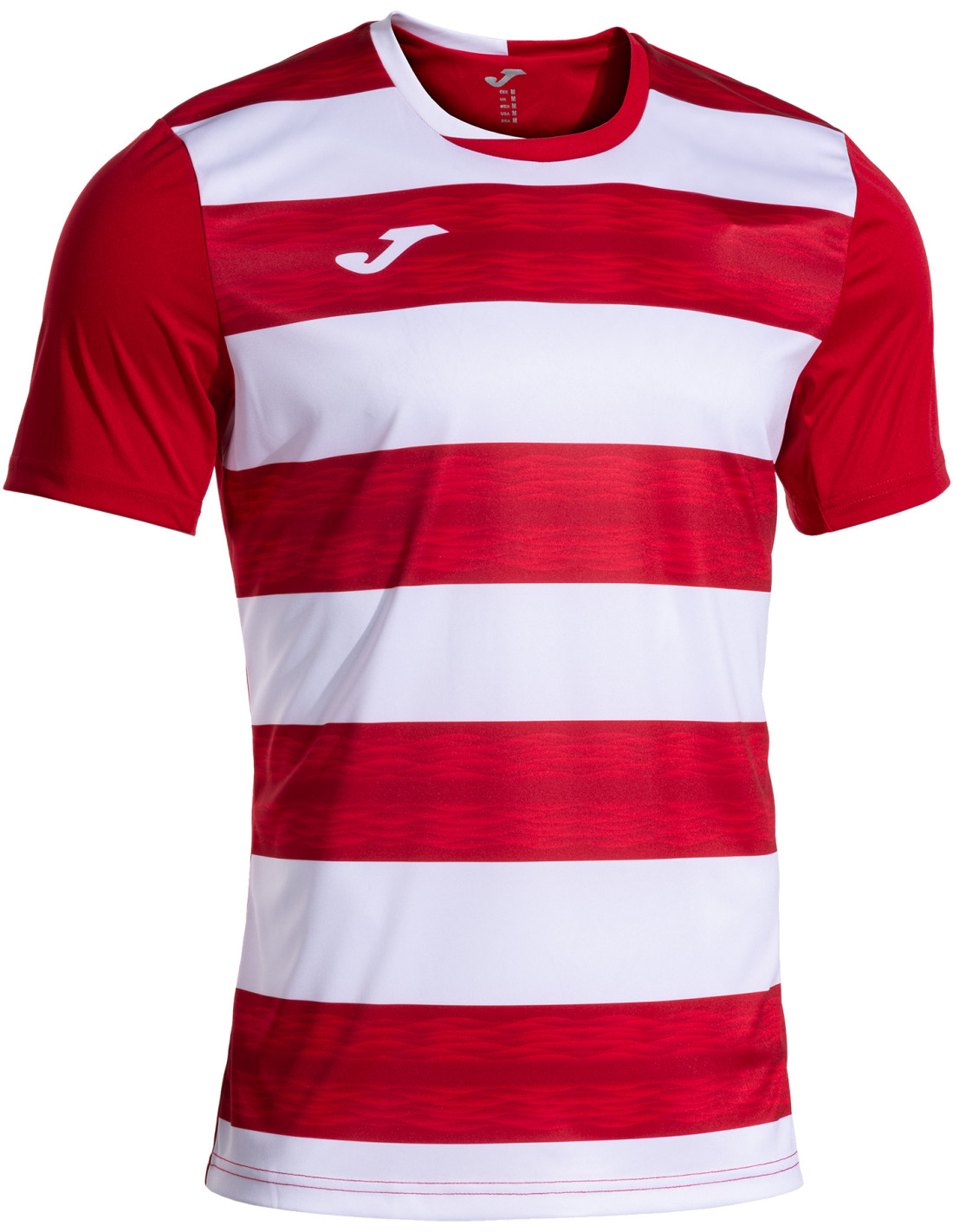 Le maillot football homme JOMA EUROPA VI allie style et technicité : tissu respirant avec Micro-Mesh, design sublimé à rayures, col croisé confortable et coupe semi-ajustée.